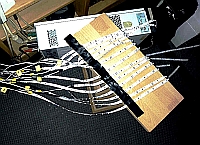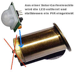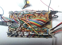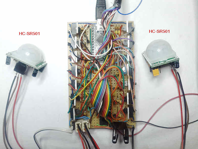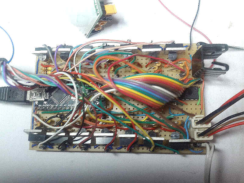 Nachdem ich mich entschlossen hatte, mich mit Microcontrollern zu beschäftigen, schien mir das Arduino-Project die geeignete Plattform zu sein. Es gibt dazu im Internet viele Fundstellen zu Anwendungen, Schaltungen, Programmen, etc., so daß man sich auch als Anfänger rel. schnell einarbeiten kann. Grundkenntnisse in der Programmierung und auch Elektronik sollten jedoch vorhanden sein. Gesagt, getan, also einen sog. Arduino UNO bei einem bekannten Auktionshaus bestellt ( knapp 10,- € - aus China ). Nach Lieferung des Boards wurden ein paar Testaufbauten durchgeführt Nachdem die ersten Tests erfolgreich verlaufen waren, sollte etwas praktisches realisiert werden. Als ich dieses Youtube-Video: Stair light controller gesehen hatte, stand fest: muss ich unbedingt selber bauen ;-) 2 LED-Streifen mit jeweils 5 m Länge hatte ich noch im Bastelkeller und ein paar elektronische Bauteile ( LED's, Widerstände, Transistoren) ebenfalls. In einem ersten Entwurf konnten 6 LED's direkt vom Arduino angesteuert werden. Es sollten aber 14 Stufen beleuchtet werden, der Arduino kann aber nur max. 6 Kanäle mit einem PWM-Signal ansteuern. Glücklicherweise gibt es aber von Texas Instruments ein 16-Kanal LED-Driver-IC TLC5940, mit dem sich weitere Kanäle mittels Arduino steuern lassen. ![]() Also wurde auf einem sog. Breadboard (Steckplatine) die entspr. Schaltung aufgebaut, siehe Bild 1 und Bild 2. Es gab jedoch noch ein weiteres Problem zu lösen: Der TLC5940 kann mit max. 120 mA pro Kanal belastet werden, was jeweils nur für ein paar LED's ausreicht. An den Treppenstufen sollten aber handelsübliche LED-Streifen mit 60 LED's pro Meter verwendet werden. Bei Treppenstufen-Breiten von 80cm-110cm ergibt das also 48-66 LED's pro Stufe. Deshalb wurde für jeden Kanal noch eine Treiberstufe, bestehend aus jeweils einem NPN-Transistor BC547 und einem MOSFET IRF540 (die waren noch in der Bastelkiste), vorgesehen, s. Schaltplan Bild 3, bzw. Schaltplan-Graustufendarstellung, oder Schaltplan-SW-Darstellung. Als weitere "Stromsparmaßnahme" werden die LED-Streifen anstatt der nominellen 12V nur mit 9V versorgt, was aber noch gut zur Beleuchtung der Treppenstufen ausreicht. Insgesamt, also wenn alle LED-Streifen mit max. Helligkeit eingeschaltet sind, wurde eine Stromaufnahme von 1,2A gemessen. In der Bastelkiste fand sich noch ein Steckernetzteil mit 12V/2A, welches zur Versorgung der kpl. Schaltung ausreichen sollte. Mittels eines µA 7809-Spannungsreglers (1,5A) werden die 12V des Netzteils auf 9V herunter geregelt. Auf der Arduino-Platine sind ebenfalls Spannungsregler vom Typ 7805 vorhanden, welche aus den 9V die Versorgungspannung von 5V für den Arduino und den TLC5940 bereit stellen. Der Testaufbau mit 14 bereits auf Länge geschnittenen LED-Streifen ist in Bild 4 zu sehen. Jetzt galt es noch, das Ganze für den praktischen Einsatz aufzubauen. Dafür wurde anstelle des Arduino-UNO ein Arduino-Nano verwendet, welcher im Prinzip die gleiche Funktionalität aufweist, aber auf einer Lochrasterplatine montiert werden kann. ![]() Der erste Testaufbau mit Arduino-Nano auf dem Breadboard, bereits auf Lochrasterplatine gelötetem TLC5940 und 14 Treiberstufen ist in Bild 5 zu sehen. In Bild 6 ist der Arduino-Nano bereits auf der Lochrasterplatine verlötet. Rechts im Bild kann man den mit einem kleinen Kühlkörper versehenen µA 7809 erkennen. Oben im Bild ist einer der beiden PIR-Bewegungsmelder ( HC-SR501 ) zu sehen, welche detektieren, ob jemand die Treppe benutzen will. Bild 7 zeigt den endgültigen Schaltungsaufbau - sieht wild aus ;-) , soll aber in einem kleinen Kunststoffgehäuse Platz finden. Die LED-Streifen wurden in Aluminium U-Profile (8,2 x 10,1 x 8,2 mm) aus dem Baumarkt geklebt, siehe Bild 8. Die Stripes sind zwar geringfügig breiter als die Nut, aber mit sanftem Druck einer abgerundeten! Pinzette lassen sie sich hineinpressen, bzw. verkleben. Die Alu-Profile selbst wurden mit doppelseitigem Klebeband an die Setz-Stufen der Treppe geklebt. Vorher wurden allerdings noch 6 mm-Löcher links oben in die Setz-Stufen gebohrt, um die Anschluß-Kabel der LED-Leisten durchzuführen und somit eine unsichtbare Verkabelung unter, bzw. hinter der Treppe zu ermöglichen. Gesteuert wird die Schaltung von 2 Bewegungsmeldern ( z.B. PIR Motion Sensor ), welche jeweils oben (in der obersten Setz-Stufe) und unten (seitlich) an der Treppe montiert wurden. Bild 9 und Bild 10 verdeutlichen, wie die beiden Bewegungsmelder an der Treppe befestigt wurden. (Der große "Kasten" in der obersten Stufe war bereits vorhanden, weil dort vorher ein normaler 230V-Bewegungsmelder montiert war, der einen daneben montierten Halogen-Spot gesteuert hat.) Zur Montage des unteren Bewegungsmelders wurde eine ausgediente Garten-Solarleuchte verwendet. Dazu wurde einfach der "Solarkopf" der Gartenleuchte benutzt und aus diesem die LED samt Elektronik und Akku entfernt. Stattdessen wurde der PIR-Bewegungsmelder in dem Rohr verklebt. Die kleine Solarzelle wurde in dem Rohr belassen, sie diente anschließend als Klebefläche für die Konstruktion. Befestigt wurde das Rohr incl. Bewegungsmelder wiederum mit doppelseitigem Klebeband. Vorteil: Sieht ganz ansehnlich aus und durch den 45°-Winkel der Solarzelle kann man die ganze Mimik drehen, um so den günstigsten Erfassungswinkel für den Bewegungsmelder zu ermitteln. Schließlich soll das Treppenlicht nur ausgelöst werden, wenn sich jemand unmittelbar vor der Treppe befindet und nicht wenn man nur auf dem Flur an der Treppe vorbei geht. Der Bewegungs-Melder musste aber letztendlich doch mit schwarzem Isolierband partiell abgeklebt werden, damit nur Bewegungen direkt vor der Treppe detektiert werden, siehe auch Bild 10. ![]() |